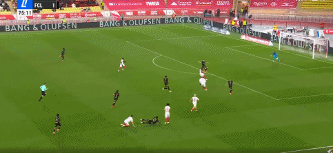 第85分钟,再下一城,德马内-卡里姆助攻马肯戈折射破门,洛里昂2-1